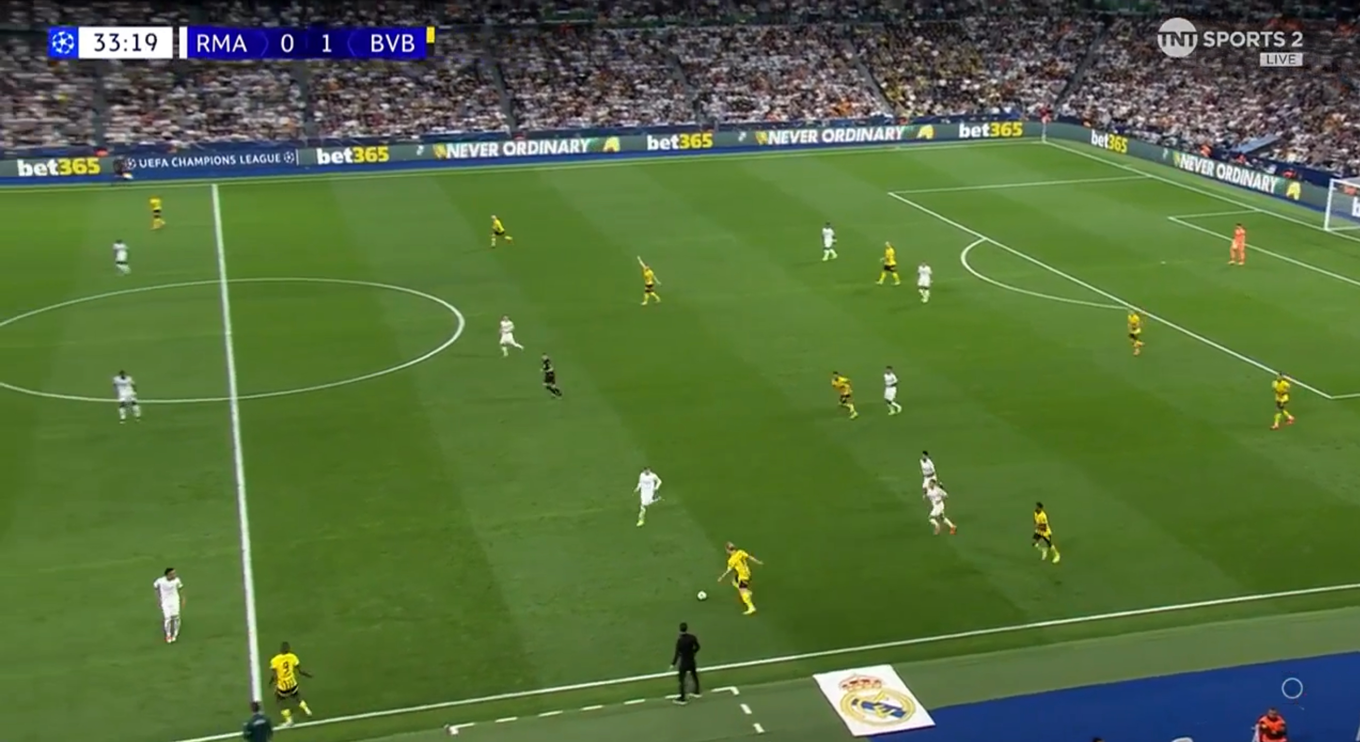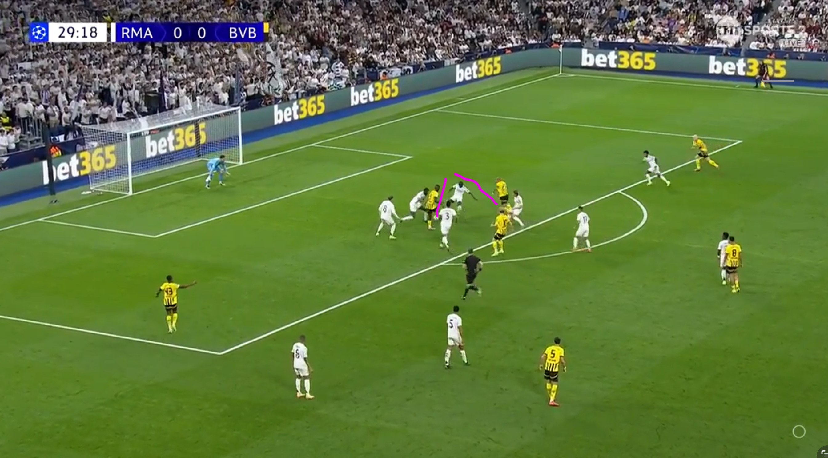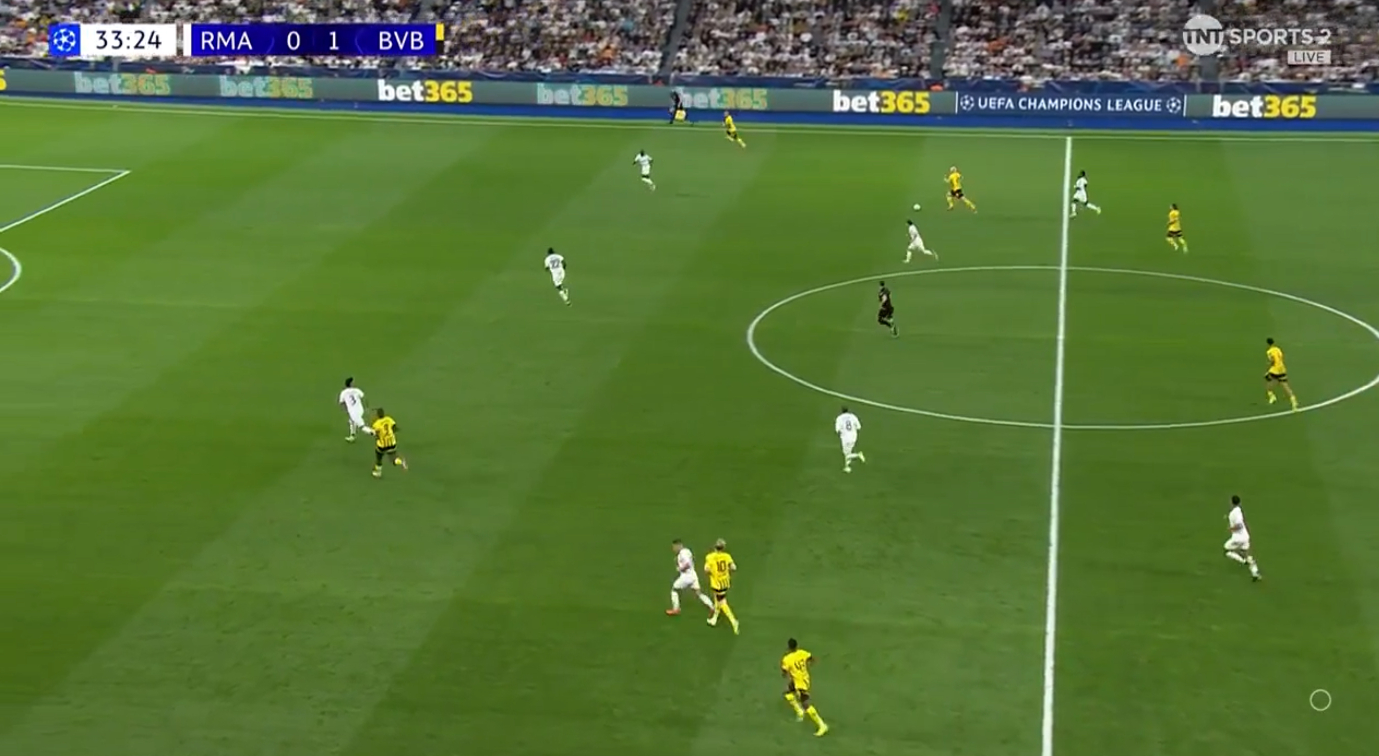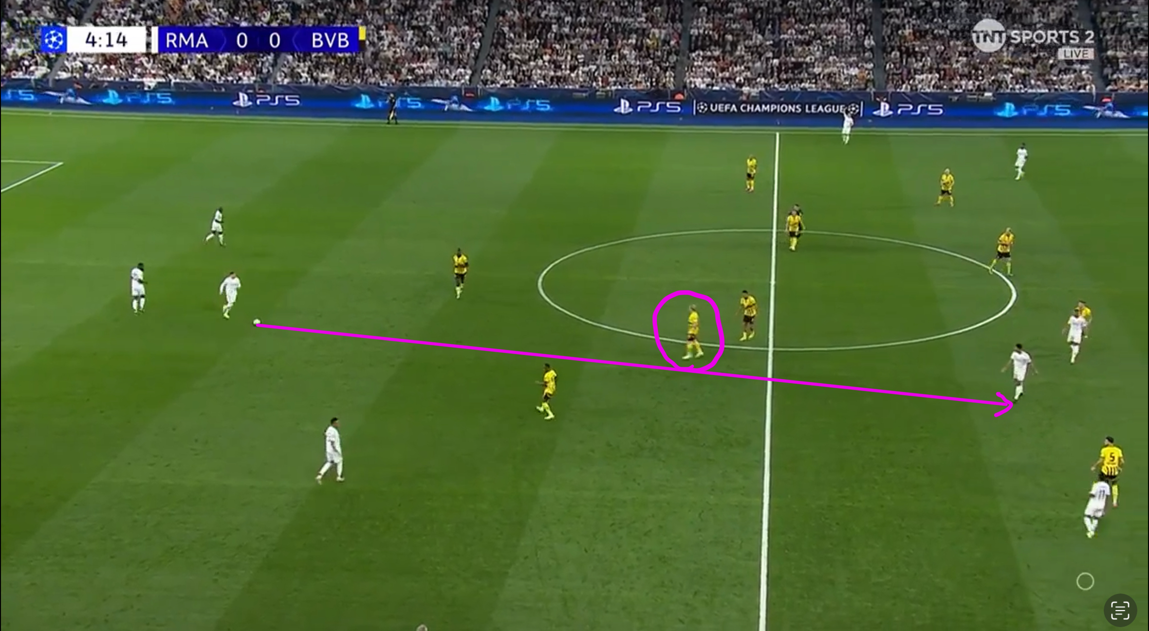 레알에서는 벨링업 호드리구 비니시우스 음바페 같은 선수들이 침투 움직임이 좋아 뒷공간으로 패스를 주는 퀄리티를 많이 신경써서 준다