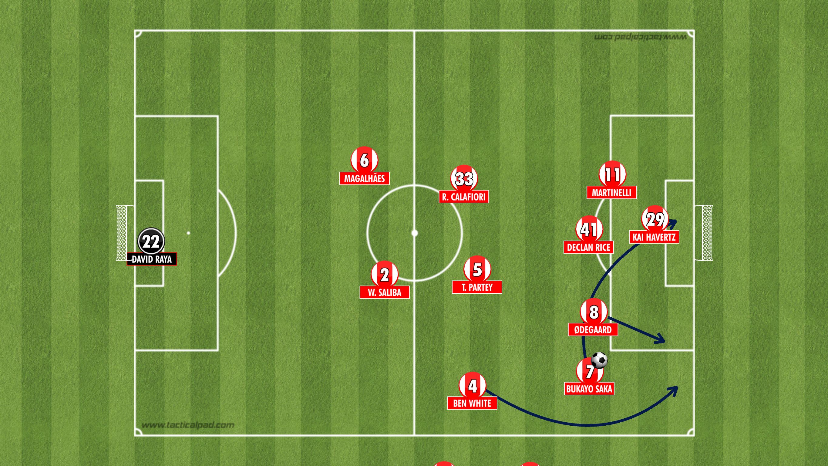 근처 상대선수들까지 같이 오게 되어 사카가 소유하다 패스를 주면 다른 동료 선수들이 편하게 공을 받아 전개를 할수있다