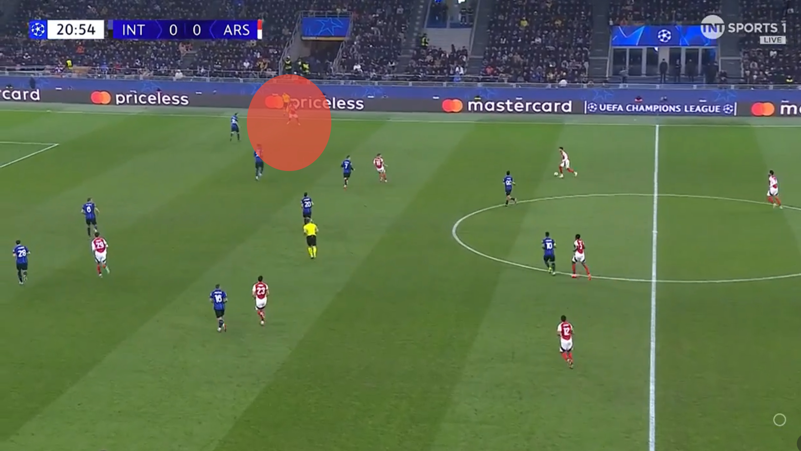 현재 이 위치에서 공을 받을때 사카는 등지고 있는 상황에서 엄청나게 좋은 공소유를 보여준다