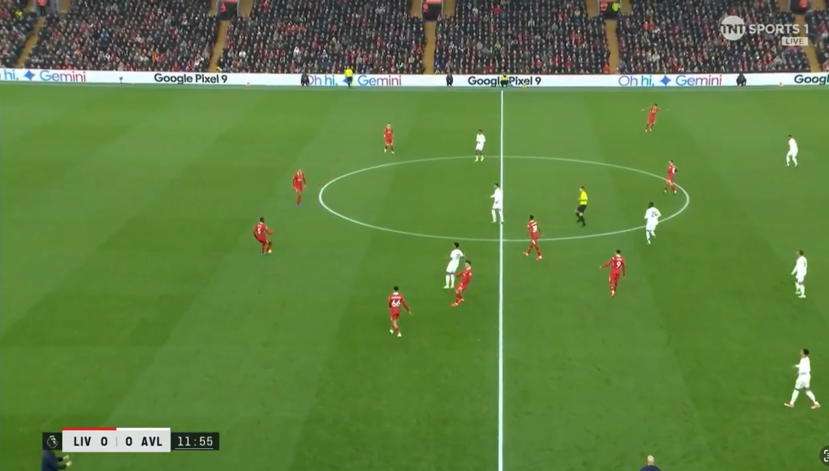 후반전이후 가면 갈수록 아스톤빌라가 더 사이 간격이 벌어져 라이언이 공받기가 쉬워지며 더 많이 받는 상황이 많아지고