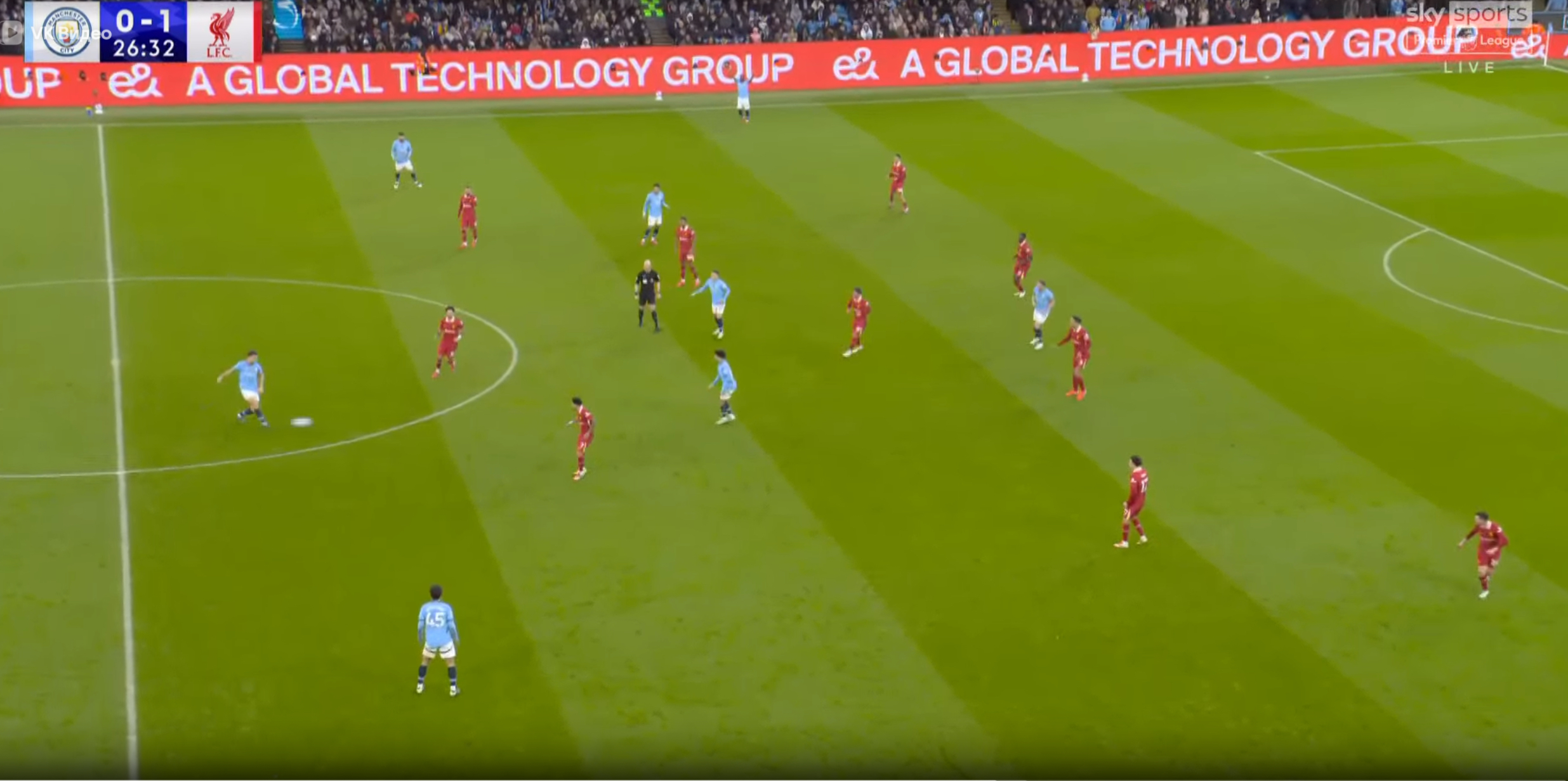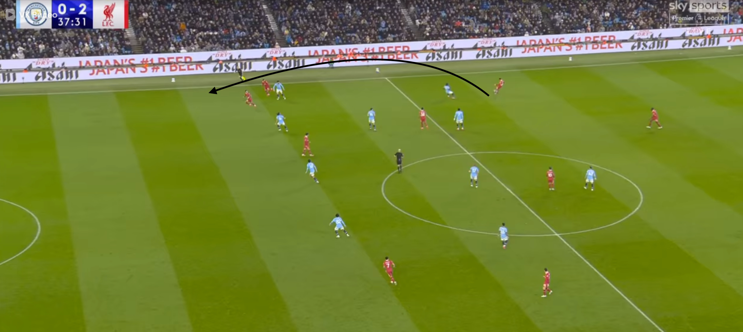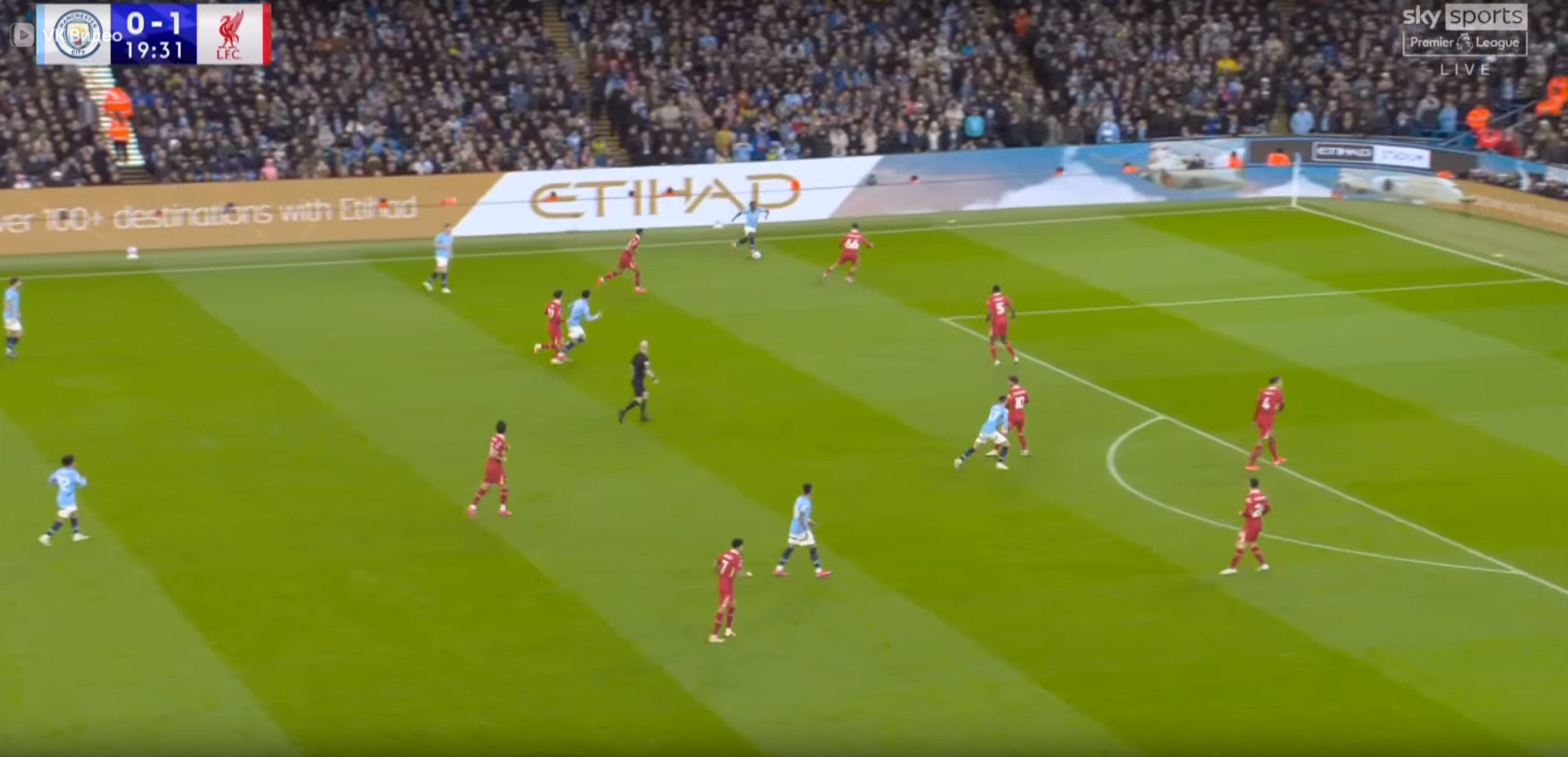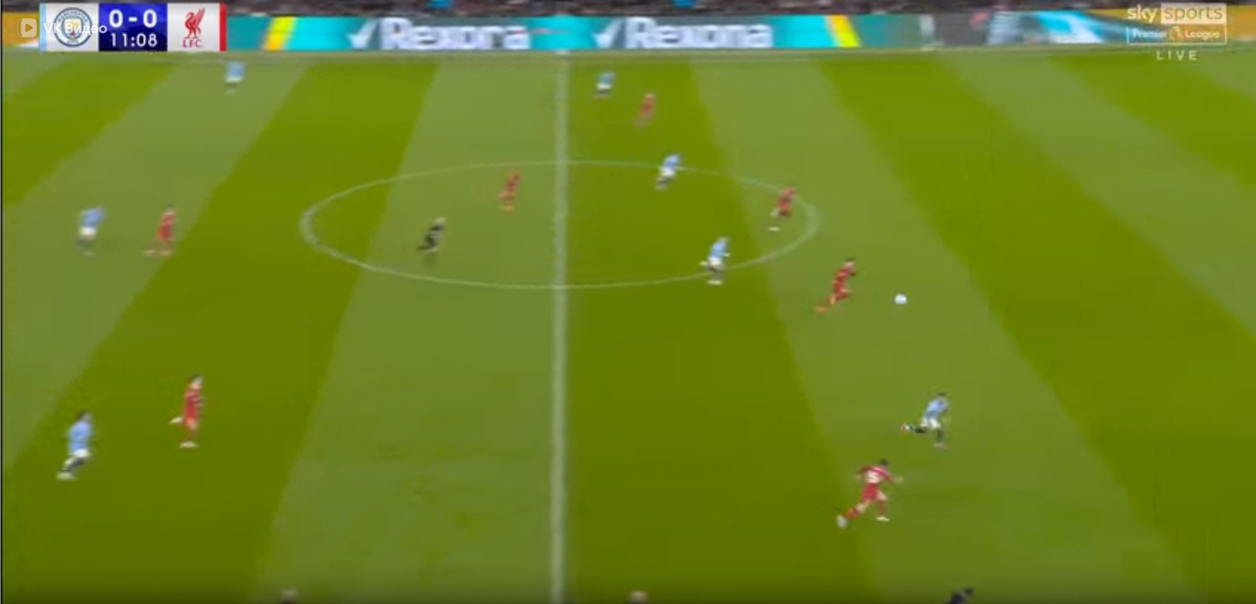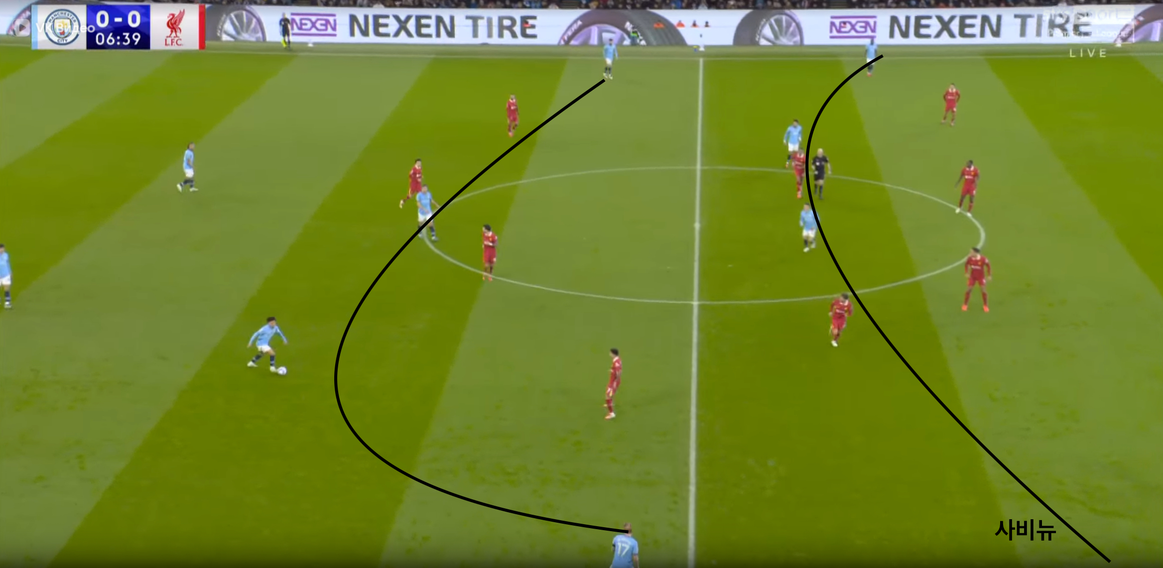 후반전에 맨시티가 그런 움직임이 생겼다고 해도 이미 슬롯을 대응을 한 모습이었고 많이 늦은 상황이었다